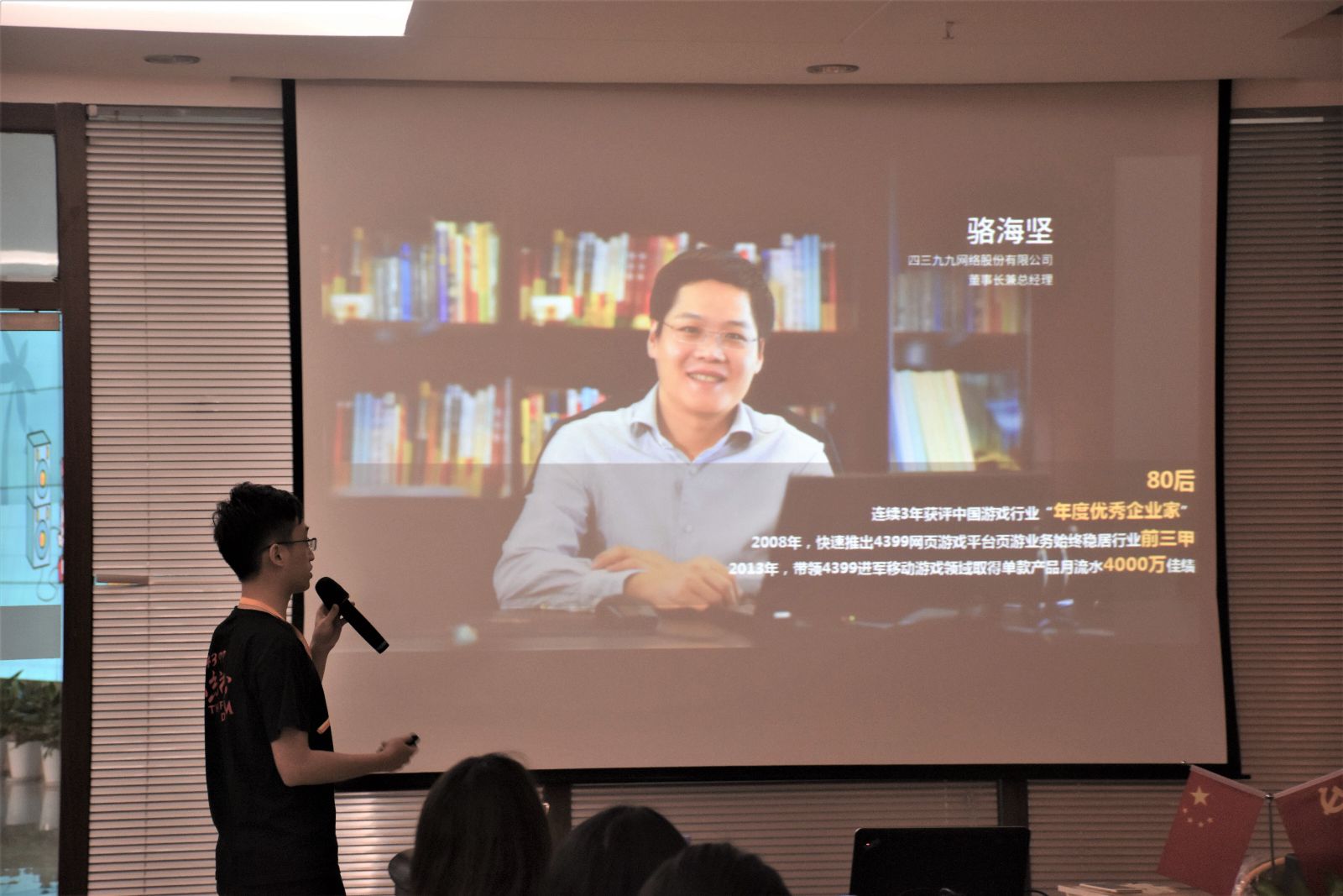 游戏之后,人事资源部的部长给我们简略介绍了4399公司的成就、发展历史和企业文化。公司的两位主管也分别向同学们讲述了他们和4399的不解之情,分享了他们大学时期的梦想与奋斗,迷茫与探索,以及如何找到自己的人生定位,并以4399公司对人才的具体需求为例对我们未来该如何努力提出了一定的建议,同学们感触颇深,受益良多。