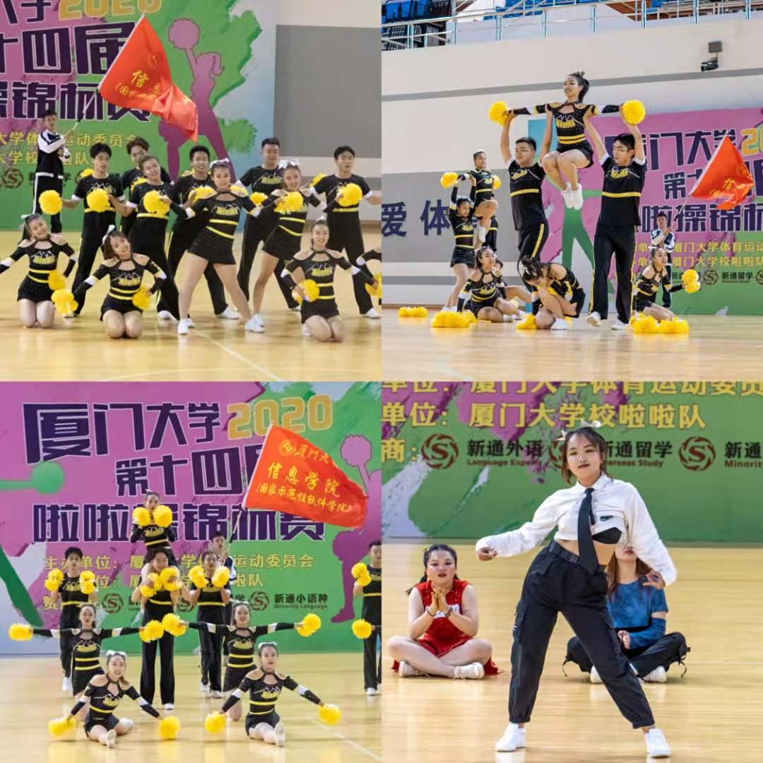 2020年11月14日,厦门大学第十四届啦啦操锦标赛在翔安校区综合体育馆正式开赛,本次比赛共有10个学院参赛。开幕式上,信息学院啦啦操队与其他学院的啦啦操队,分别表演了预热节目,为现场营造了热烈的气氛,整个体育馆洋溢着青春与喜悦,期待与鼓励。