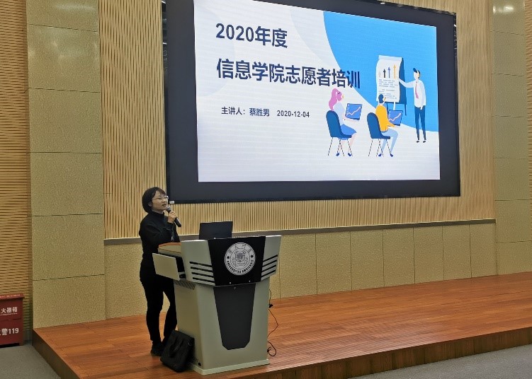 为了迎接“12·5国际志愿者日”,提升新生志愿者的基本素养,我院于12月4日晚在翔安校区学武楼B101报告厅举行新生志愿者培训大会,会议由学院团委副书记蔡胜男老师主讲,2020级新生志愿者参与了本次培训。