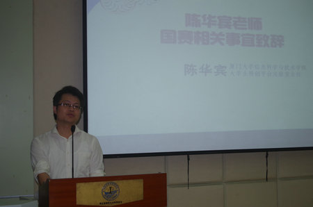 颁奖典礼的最后,陈华宾老师向在场的同学们介绍国家级电子设计竞赛相关事宜。此次校级赛是作为国赛的选拔赛,学院已从此次校级赛选拔了二十多支队伍作为重点团队,经过进一步的集训后,这些队伍将于8月份迎战国赛。陈华宾老师还详细介绍了国赛的各项安排,鼓励同学们多参加此类科创比赛,在竞赛的实践中巩固专业知识,将专业知识充分运用于实践中,有效提高动手能力。