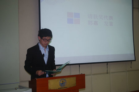 随后,主办方公布了获奖名单和获奖作品,由李承华老师和陈华宾老师上台为获奖选手颁奖。颁奖过后,现场制作组的获奖代表郭嘉同学上台发言,介绍自己的参赛经验和心得。他表示,竞赛过程要注重实践和课本的联系,将设计转化为产品才是成功。此外,团队合作也是至关重要的。