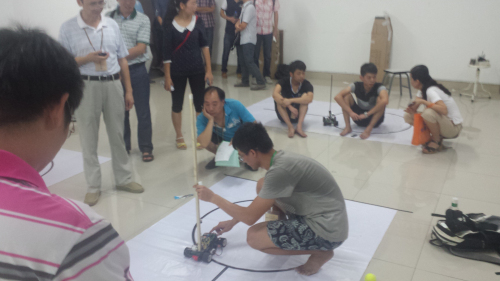本次电子设计竞赛前期选拔赛从9月3日上午8:00开始,到9月6日晚上8:00验收封箱截止,共历时四天三夜。在这四天三夜里,选手们昼夜不停的工作。凌晨两点依旧可以看到参赛队员们紧张忙碌工作的身影。经过激烈的角逐,前期校内选拔赛共选出五只队伍赶赴福州参加决赛。决赛现场,参赛队员一边进行作品展示,一边进行详尽专业的讲解,评委老师不时点头赞许。