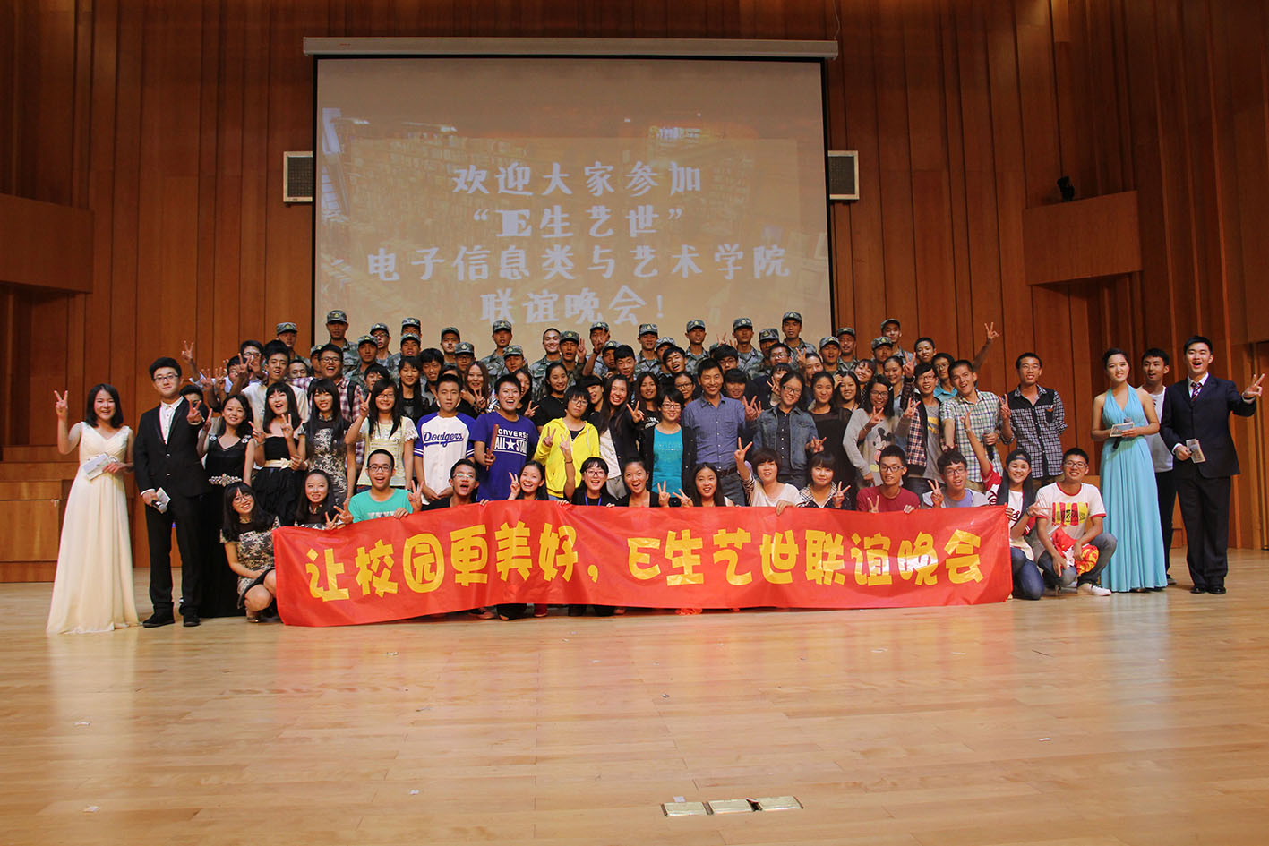 2014年10月18日晚7点,在主持人声情并茂的开场下,来自2014级信息学院电子信息类与艺术学院的同学们相聚艺术学院李成义-张治华音乐厅,共同参加一场别开生面的迎新联谊晚会。本场晚会信息学院通信工程系、电子工程系以及艺术学院学生会文娱部共同举办,不仅仅吸引了新生,两院的领导和老师以及部分老生也参加了本次晚会。