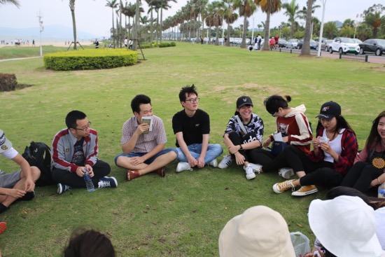 天气舒爽,风景优美,一支朝气蓬勃的骑行队伍,行走在景色优美的环岛公路上,同学们一边骑着自行车,一边欣赏着沿途的美景。很快就到了目的地黄厝海滩,难得的好天气让大家心情轻松愉快,纷纷在海边拍照留念。随后,大家在草地上玩起了7过、歌词接龙等小游戏。大家三人一组,从素不相识的陌生人很快变成了积极配合、默契的队友,最后胜出的队伍有机会获得精美笔记本、畅销书籍等奖品。