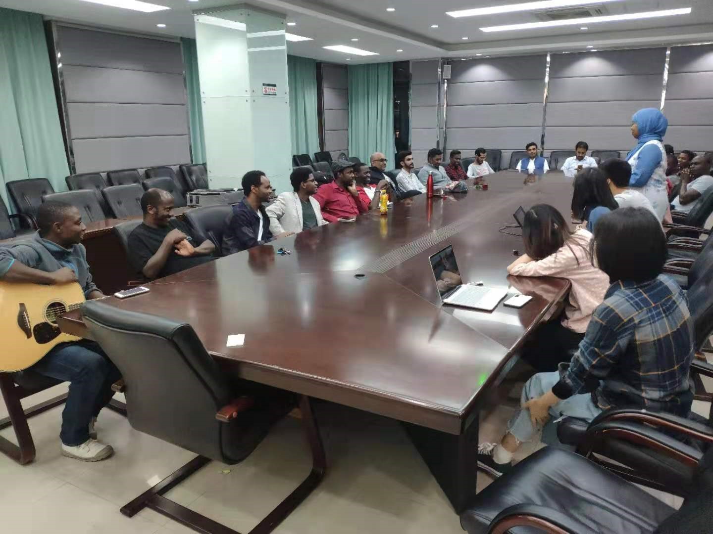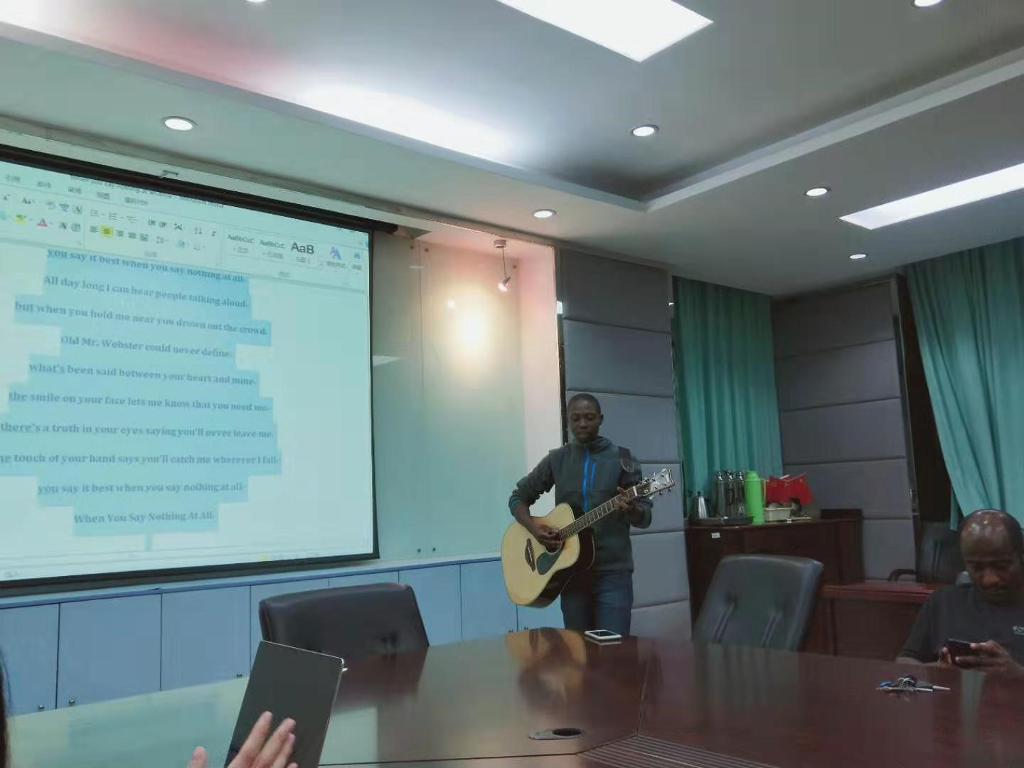 为了进一步拉进彼此的距离,Emmy为大家弹唱了一首温暖的《when you say nothing at all》,在座大部分海外生都不自觉地跟着Emmy的吉他声和歌声哼唱了起来,气氛非常的融洽。
