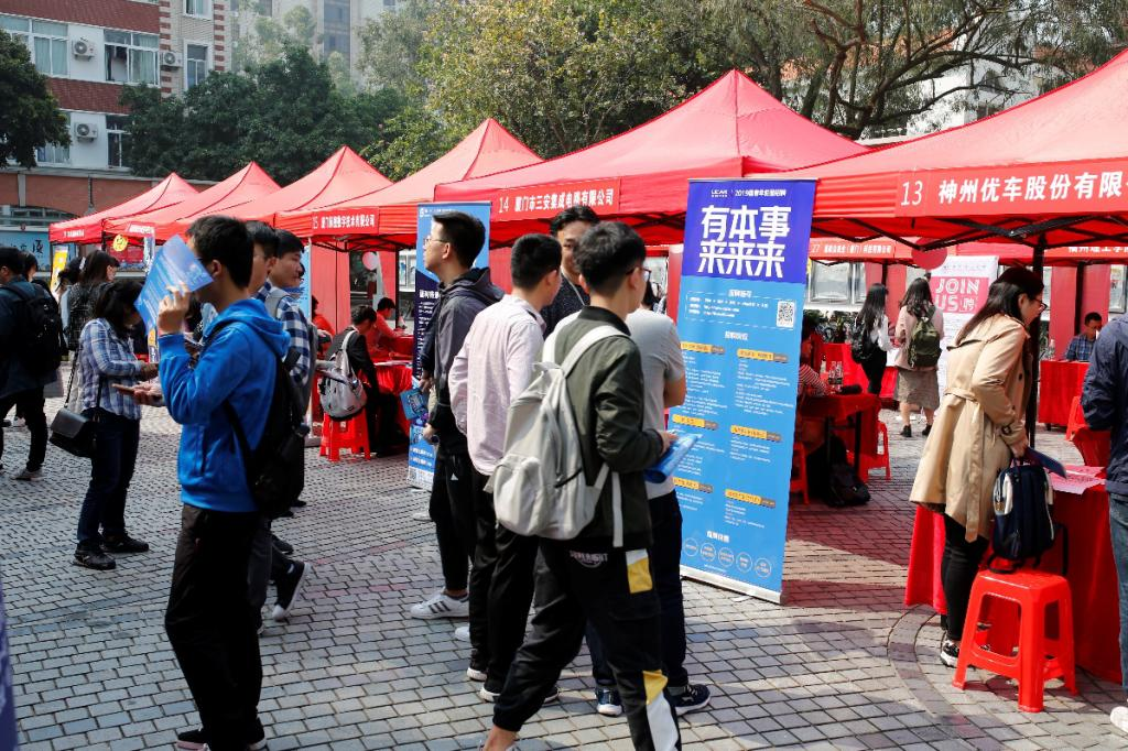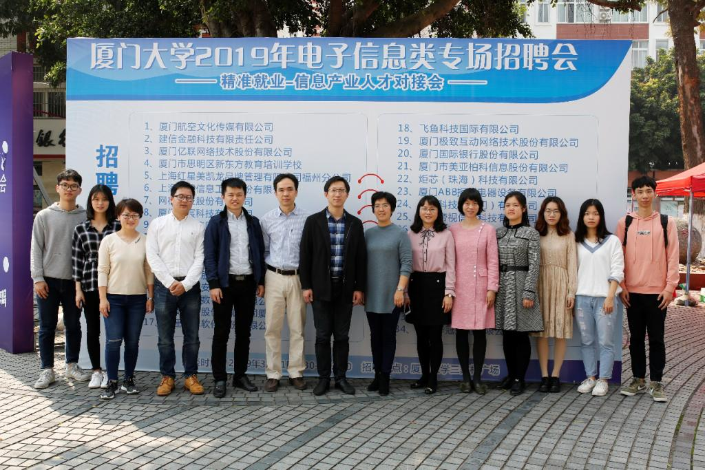 20193月21日上午,“厦门大学2019年电子信息类专场招聘会”在厦门大学三家村广场拉开帷幕。本次招聘会由厦门大学学生就业创业指导中心主办,信息科学与技术学院电子信息科学与技术学院软件学院物理科学技术学院共同承办,旨在进一步推动我校2019毕业生就业工作2020届学生的暑期实习工作企业和学生的双向选择、精准就业提供一个平台。学生处副处长高斌老师,信息学院党委副书记李承华老师、电子学院党委副书记唐拥华老师,学生处就业指导科林智敏老师,辅导员唐腾凤老师、韩海雄老师、郑晖阁老师、黄艺明老师、蔡胜男老师和陈晨老师莅临现场进行指导。