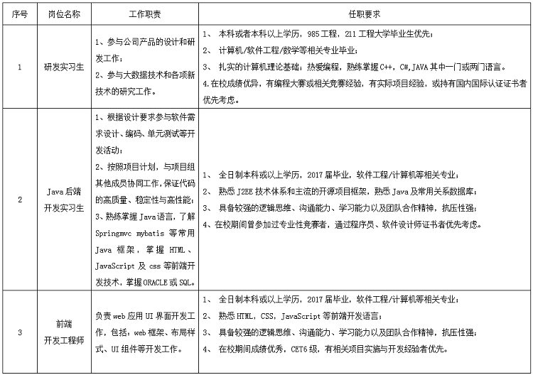 1、全日制本科及以上学历,研究生以上学历、党员及有相关实习经验的优先。