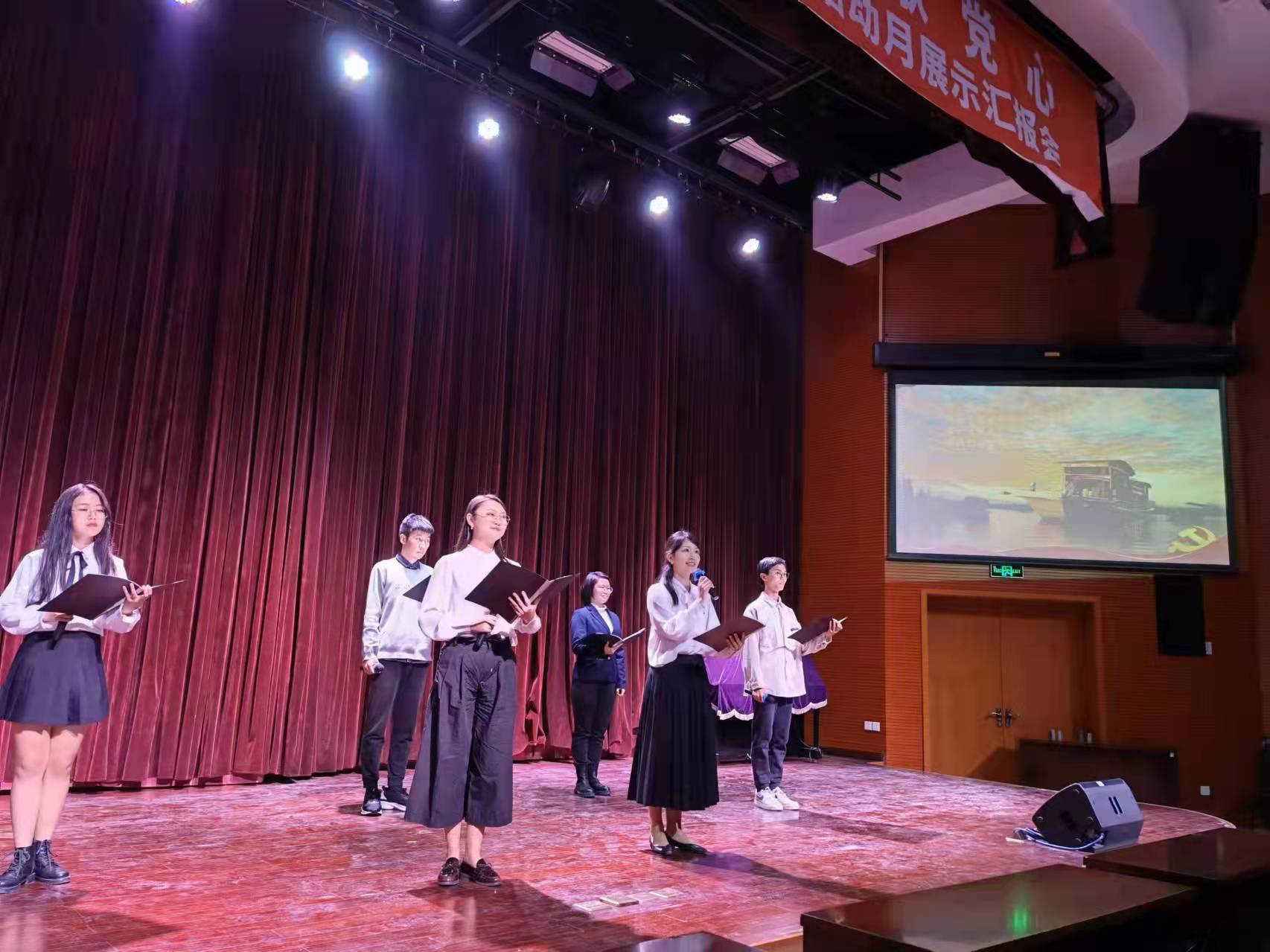 辅导员刘茜、成炘儒与大一学生带来群诵《党的赞歌》,深情礼赞中国共产党一路走来的不懈奋斗与伟大斗争精神。辅导员熊剑龙激情演绎歌曲《大中国》,传递了对祖国繁荣昌盛的衷心祝愿。