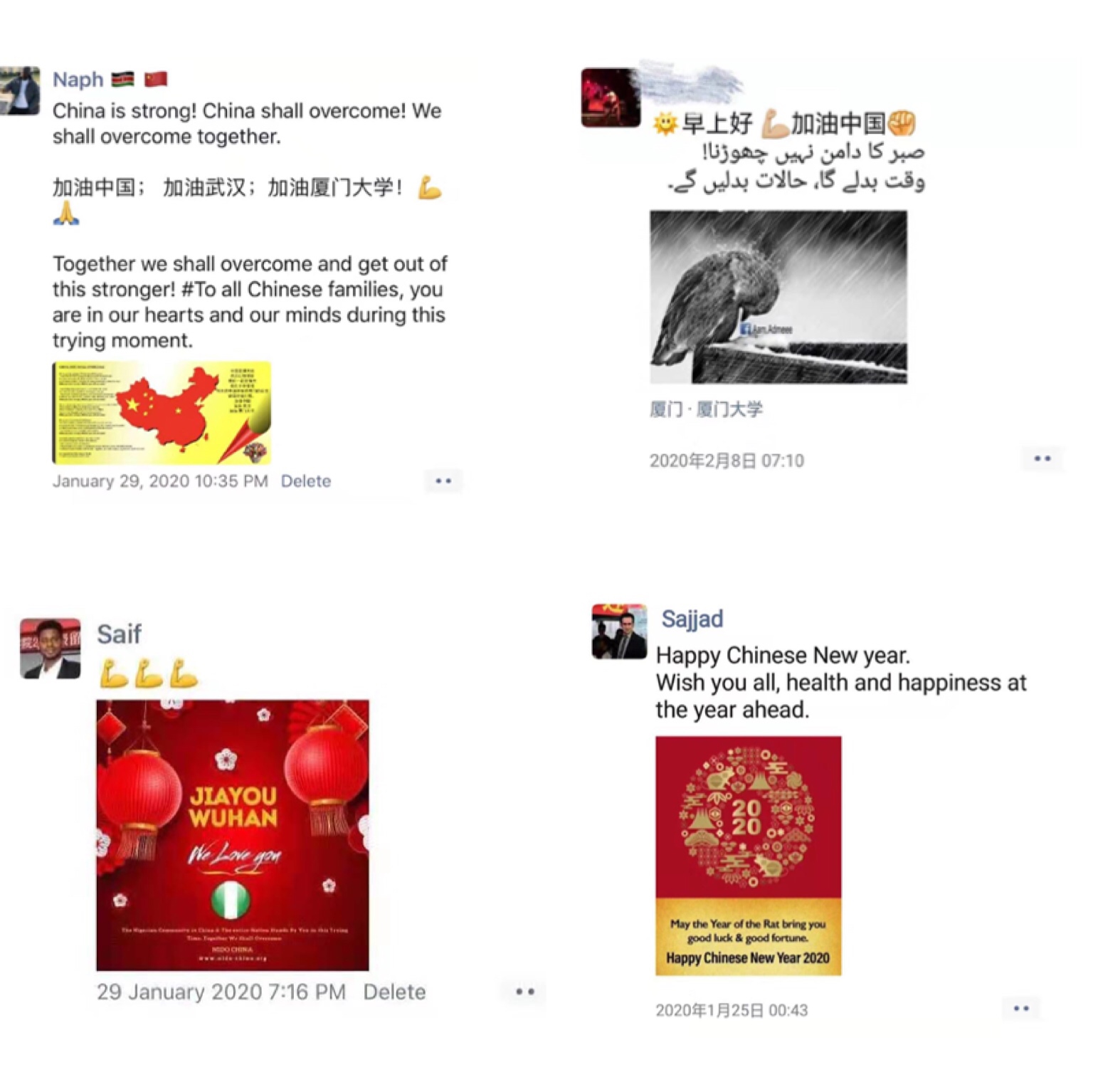 新型冠状病毒疫情在荆楚大地爆发以来,信息学院许多正在中国学习和身处国外的海外生纷纷发出鼓舞人心,充满温暖的鼓励和祝福,为武汉加油,为中国加油!