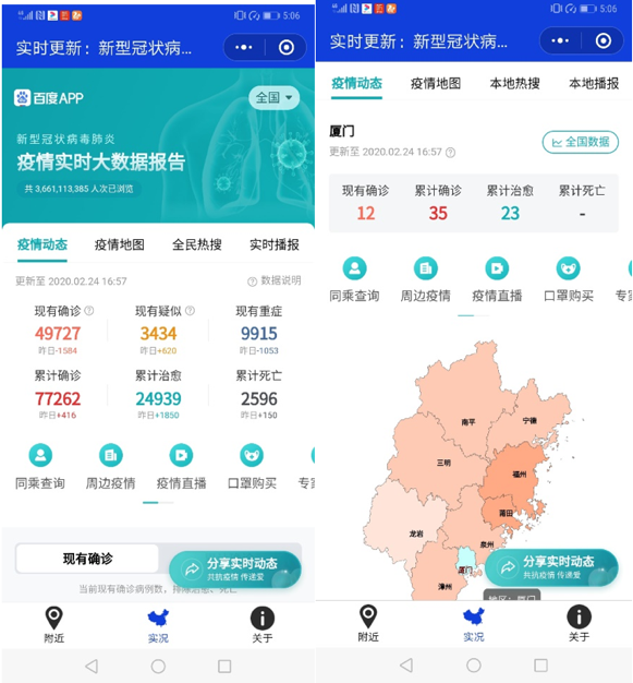 为积极响应厦门大学鼓励广大师生齐心助力疫情防控号召,2020年1月24日起,在李承华副书记的领导下,我院王程教授科研团队助理教授陈龙彪(我院挂职团委副书记)等老师迅速与厦门大学医学院团队、百度公司大数据团队组成联合团队攻关战疫,先后组织了七名本科生、研究生在线成立了新冠疫情大数据分析研究攻关小组。团队通过远程协作积极开展技术攻关,为厦门大学信息学院团委、厦门大学计算机系党支部等提供了疫情追踪小程序、疫情风险评估应用等技术支撑。