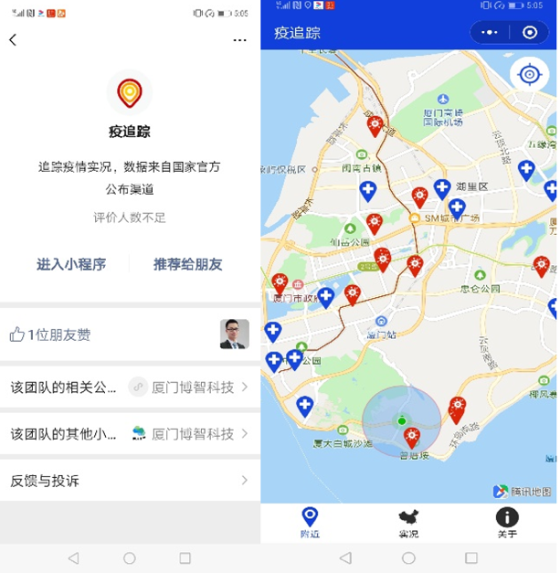 图一 团队开发的“疫追踪”小程序