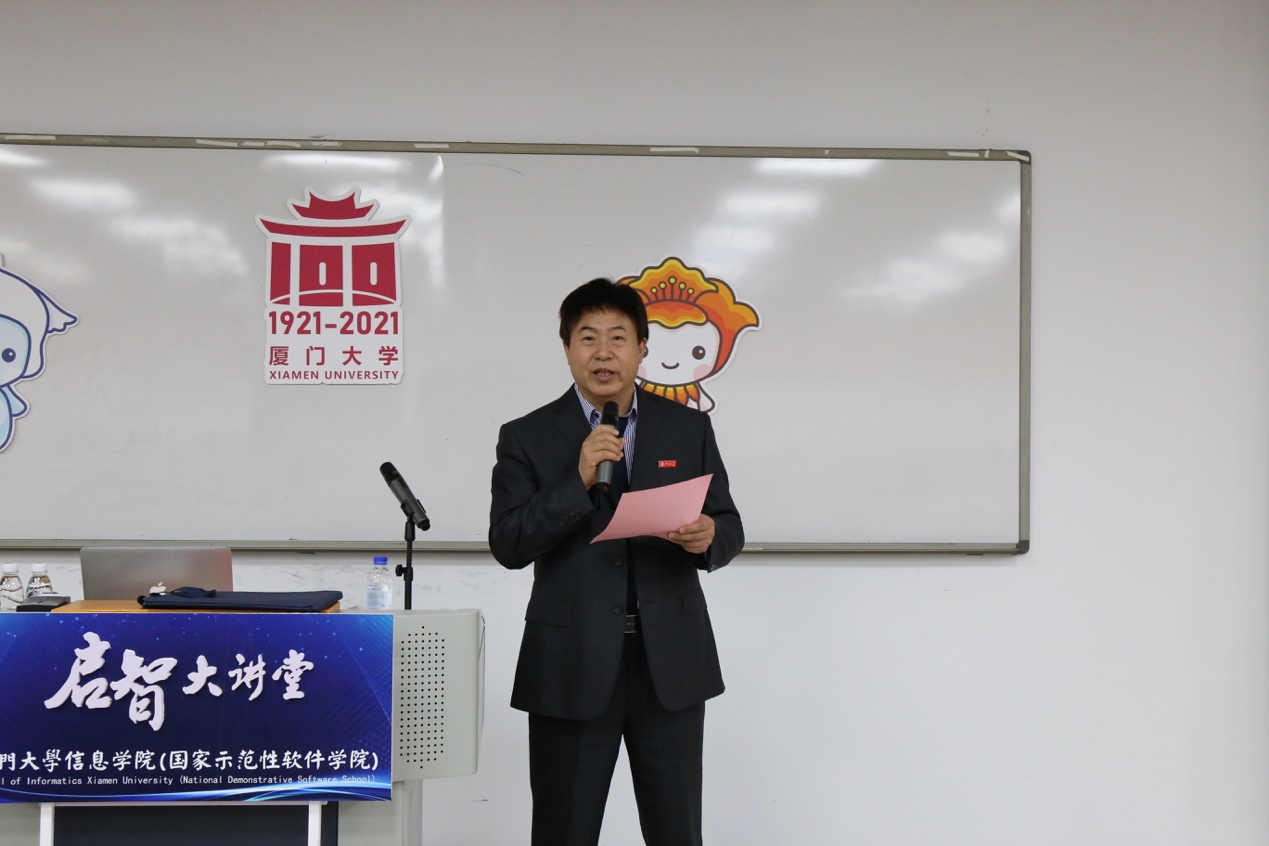 讲座伊始,舒继武院长对林海青院士的到来表示热烈的欢迎,对林院士为厦门大学信息学院建设发展给予的关心和指导表示衷心的感谢。随后舒院长向在场听众介绍了林院士的个人履历、主要研究领域、研究兴趣和学术贡献。