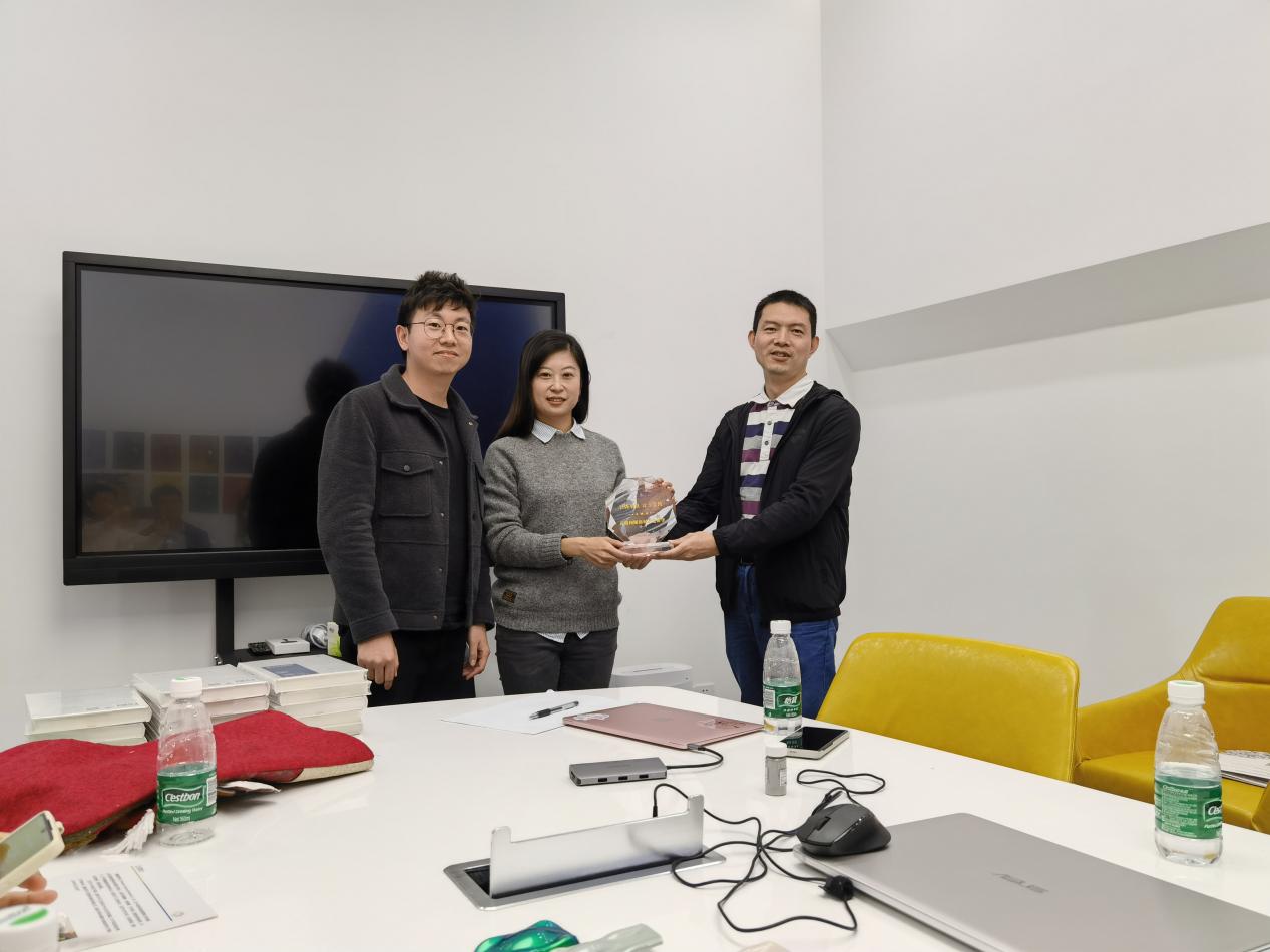 本次游学活动获得了张兰兰校友的大力支持。信息分会秘书长王剑通主持颁奖环节,1993级金融系校友何生向张兰兰校友颁发纪念奖杯,表示感谢。