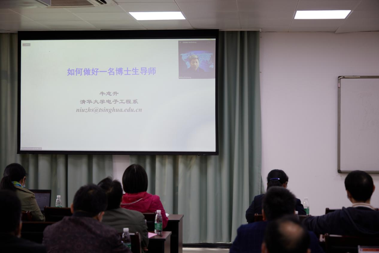 大会特邀清华大学牛志升教授作题为《如何做好一名博士生导师》的专题报告。他指出,导师要引导博士成为一名独立的学者,鼓励学生保持研究兴趣和学术激情,在网络化时代保持专注及深层思考。牛教授语言诙谐,报告详实,与会教师受益良多。