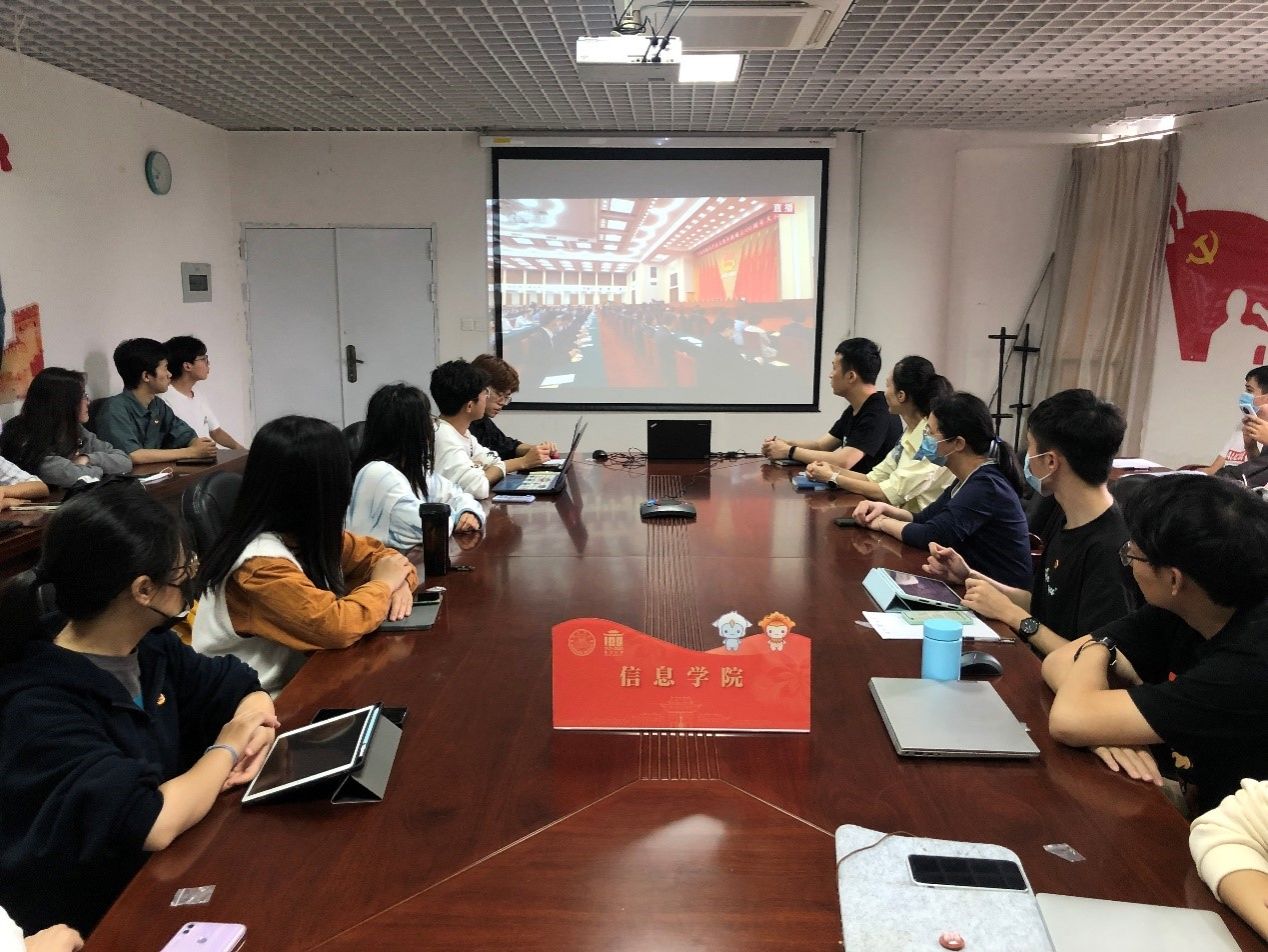 5月10日上午10时,庆祝中国共产主义青年团成立100周年大会在北京人民大会堂隆重举行,习近平总书记出席大会并发表重要讲话。信息学院党委副书记龙坚毅,学院辅导员、党员团员和青年学生代表、“强信工程”一期学员代表齐聚一堂,认真收看庆祝大会,共同学习领会习近平总书记重要讲话精神。